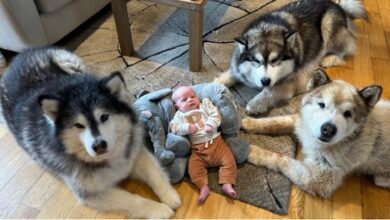 In a poignant portrait of the love and protection of animals, we see the world’s safest baby surrounded by his…