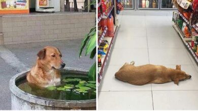 On A Sweltering Summer Day, A Store Invites A Stray Dog Indoors To Help It Chill Out