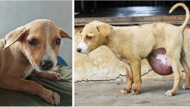 Charming Puppy Discovered on the Street with a Large Hernia on Her Belly