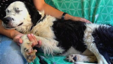 Dog Falls Asleep In Rescuer’s Arms Once She Realizes She Is Safe