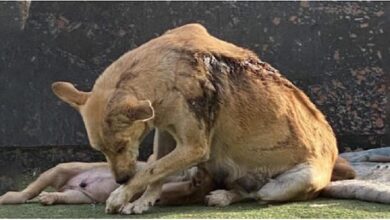 Motherly Courage Unveiled: A Mother Dog Defends Her Puppies Against Acid Attack, Remaining Resolute by Their Side